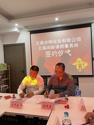 活动结束,云南尚矩律师事务所与云南步明实业有限公司举行了法律顾问单位签约仪式,云南尚矩律师事务所主任刘先龙与云南步明实业有限公司董事长易步奎分别代表云南尚矩律师事务所与云南步明实业有限公司在《常年法律顾问合同》上签字盖章,并就双方开展全方位合作一事达成共识。