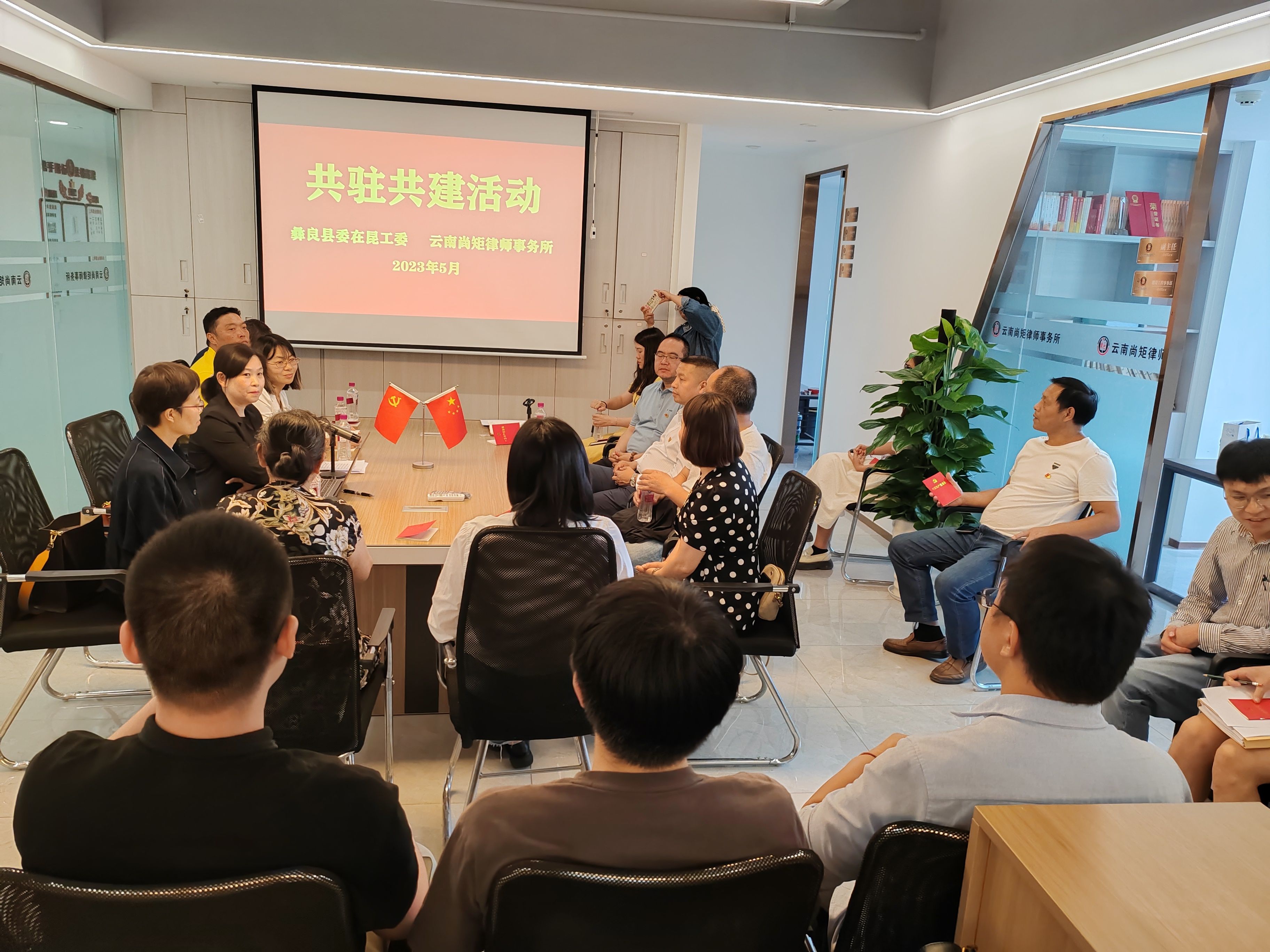 2023年5月26日,云南尚矩律师事务所党支部与彝良在昆工委联合开展了以“党建引领聚合力,结对共建促发展”为主题的共驻共建活动,此次活动主要学习党的二十大精神相关内容,由云南尚矩律师事务所党支部书记刘先龙同志主持会议。