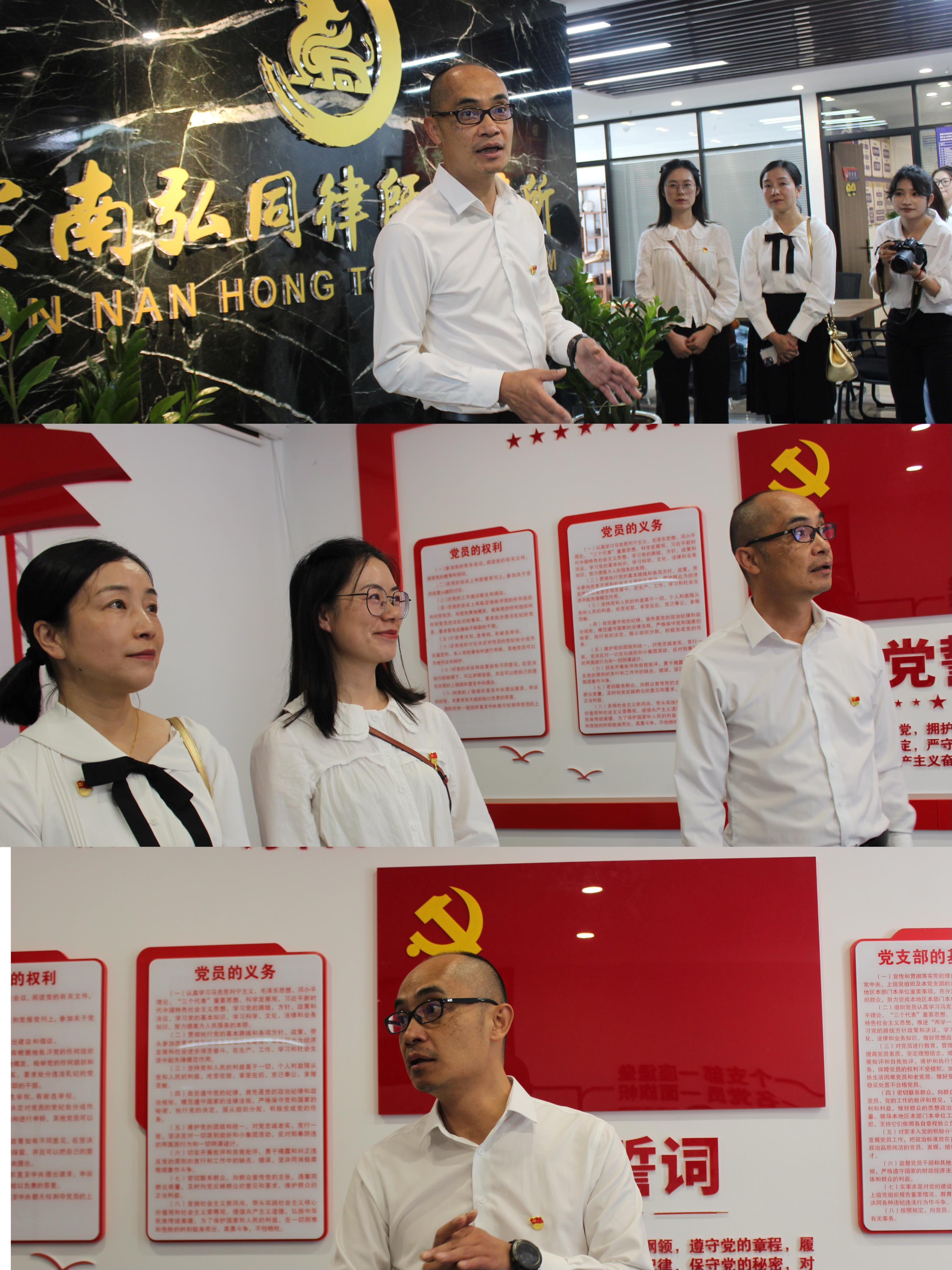 为深入学习贯彻司法部党组提出对律师工作的“五点希望”,争做党和人民满意的好律师,切实提升基层党建新力量,2023年9月7日,本所党支部按文件要求积极参加了由五华区律师行业党委组织的交流学习活动,先后到中共云南弘同律师事务所支部、中共泰和泰(昆明)律师事务所支部、中共大韬律师事务所支部参观交流学习。