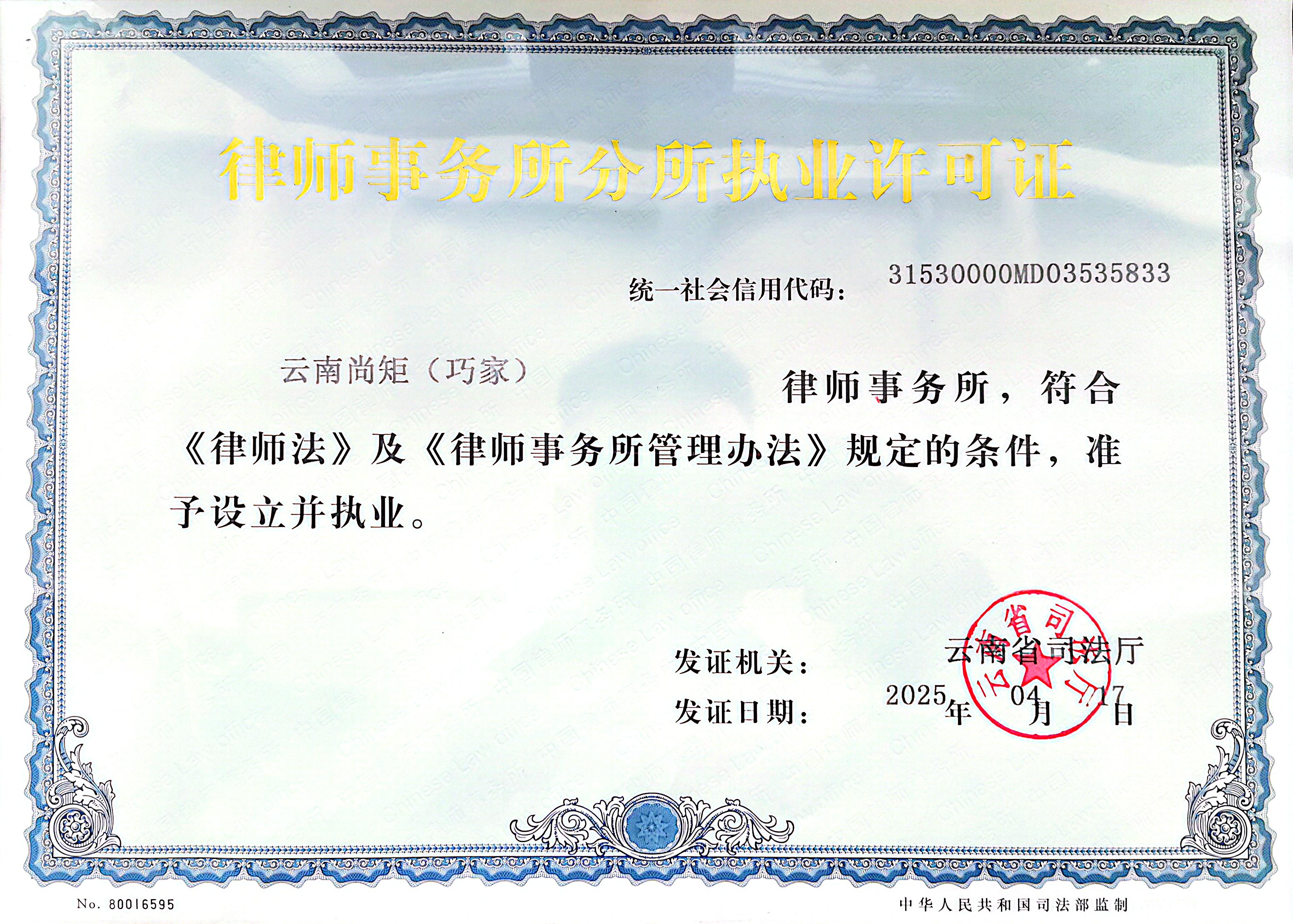 昭通巧家地区随着经济社会的发展,对法律服务的需求日益增长。云南尚矩律师事务所敏锐捕捉到这一趋势,积极筹备开设巧家分所。新成立的云南尚矩(巧家)律师事务所将依托总所的专业资源和优势,为巧家当地的企业、居民提供全方位、专业化的法律服务,内容涵盖民商事纠纷、刑事辩护、行政诉讼、法律顾问等多个领域。
